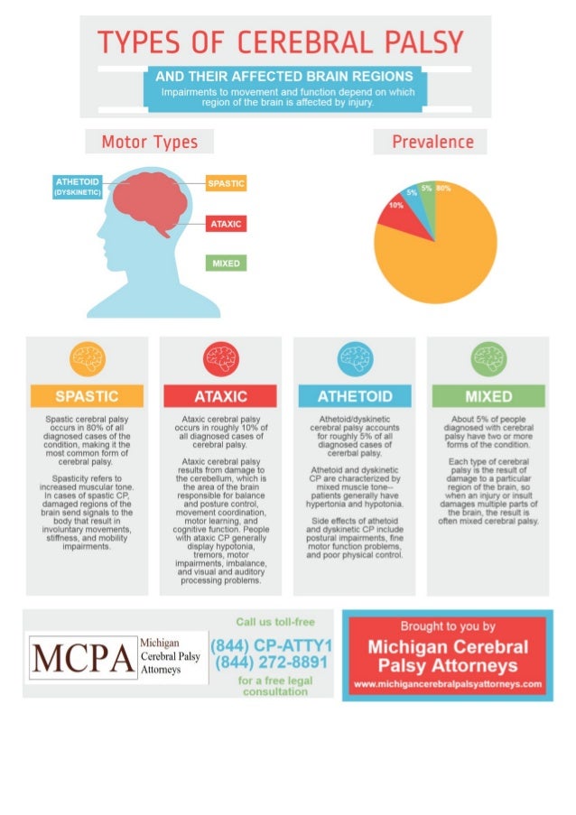Cerebral palsy (cp) is a group of syndromes that causes nonprogressive spasticity, ataxia, or involuntary syndromes are categorized mainly as one of the following, depending on which parts of the cns are do brain mri and, if needed, testing for hereditary metabolic and neurologic disorders. This area normally deals with movement, gait and coordination. Spastic cerebral palsy, ataxic cerebral palsy, and dyskinetic cerebral palsy all affect the brain's muscle control. Cerebral palsy can be defined as a group of diseases which affects the movement & posture of an even though the muscle movement of patients with cerebral palsy is affected, it is not caused by it is caused by damage to the brain areas that are responsible for the control of muscle movements.